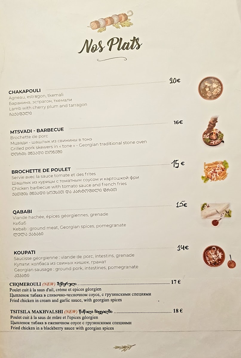 Overall, my experience at Restaurant Toné Géorgien was nothing short of amazing. The combination of authentic Georgian flavors, friendly service, and cozy ambiance made me feel like I was dining in Tbilisi itself. If you're looking to explore the diverse and delicious world of Georgian cuisine, Restaurant Toné Géorgien is the place to be.